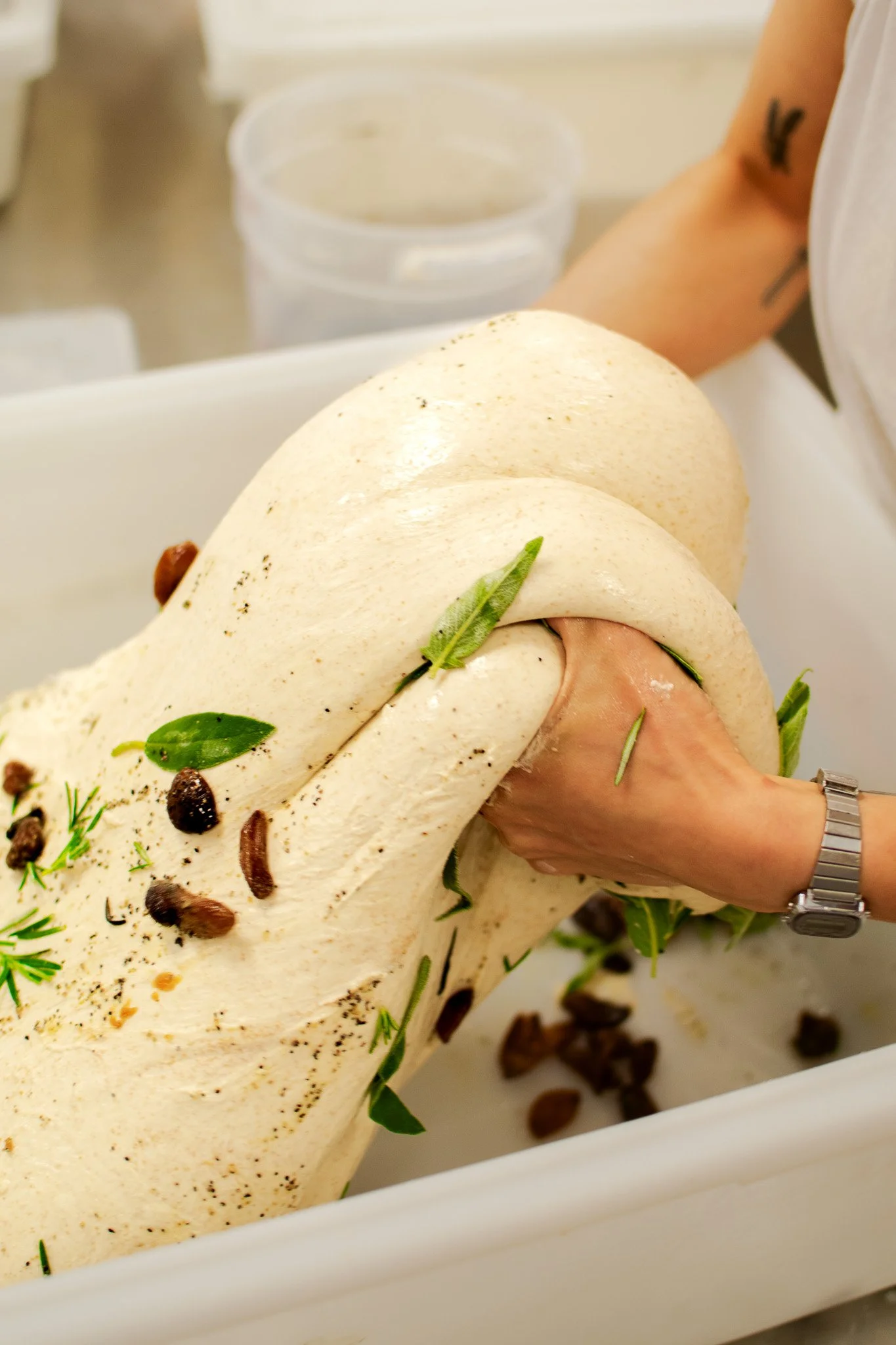 All sourdough loaves, like the Nonna G (roasted garlic + fresh herbs), are made with regionally grown and locally milled grains